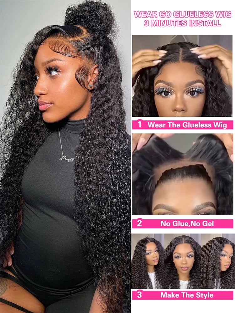 deep wave frontal wig: wear and go glueless human hair wig